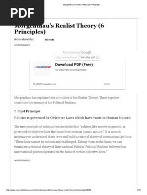 Morgenthau S Realist Theory 6 Principles Download Pdf Free Pdf National Interest International Relations